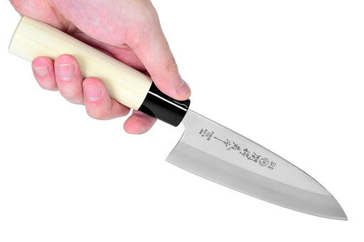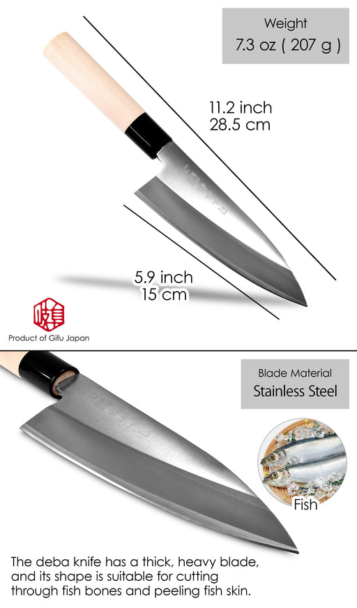 Seki Sanbonsugi Japanese Deba Knife 5.9 inch (150mm) - Japanese Stainless Steel Kitchen Knives, Wooden Handle, Made in Seki Japan