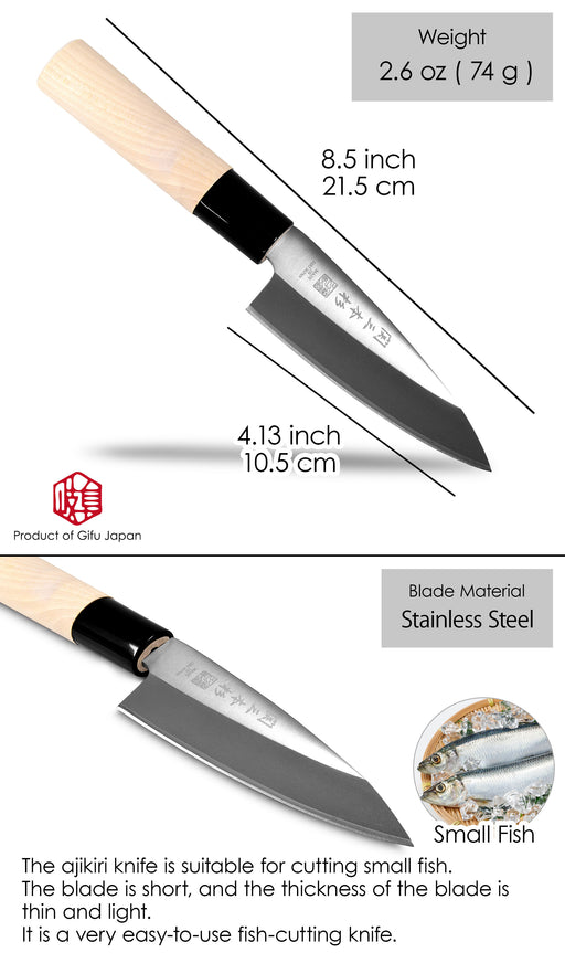 Seki Sanbonsugi Japanese Ajikiri Deba Knife 4.1 inch (105mm) - Japanese Stainless Steel Kitchen Knives, Wooden Handle, Made in Seki Japan